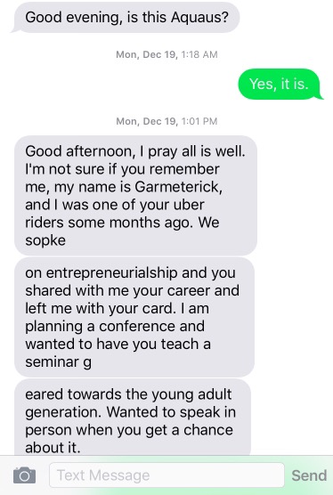 Fast forward a few months and on Sunday December 18, 2016, I received the following text message which to my pleasant surprise was completely unexpected: